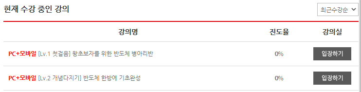(이제 막 듣기 시작해서 아직 진도율이 0프로로 표시되어 있네요..ㅎㅎ 쉿! 비밀입니다)