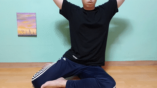 이때 양 팔은 만세를 해서 앞으로 뻗어서 바닥에 닿게 해주고