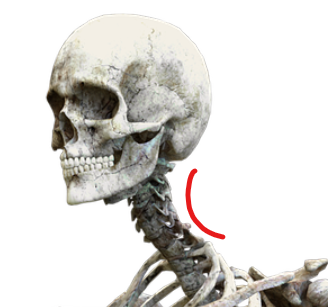 정상적인 사람의 목 뼈는 위 사진처럼 실제로 앞 쪽으로 볼록하게 휘어진 'C'자 형태입니다